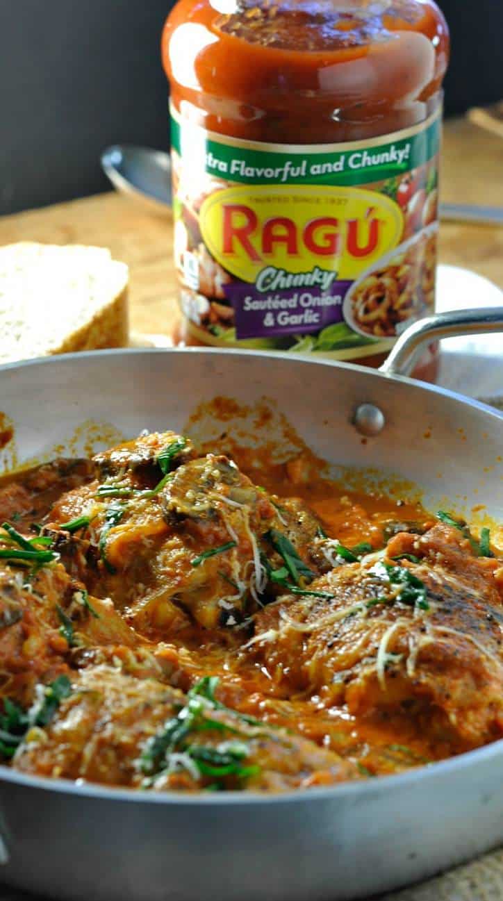 - Using the Ragu sauce makes for a quick and simple meal - great for a weeknight. All of the spices and tasty stuff is in there so there isn’t a lot of measuring and cooking involved. YAY for weeknight meals that taste like they simmered all day!