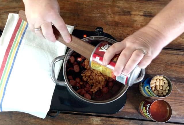 - Do NOT Drain the cans of pork and beans (there are added flavorings in the pork and beans).